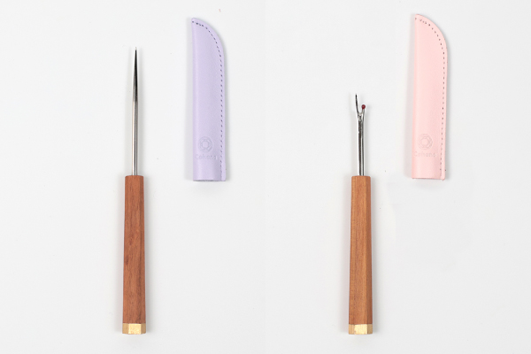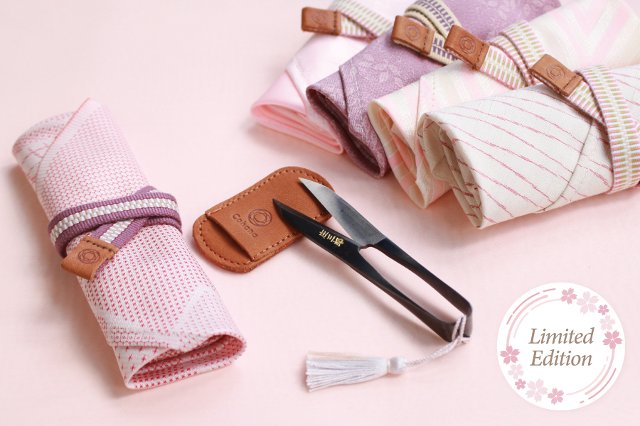 名門「庄三郎」の確かな切れ味を、さくらをイメージした着物の小風呂敷で包みました。作業前のひと手間が、手しごとの始まりを心地よく整えます 。
